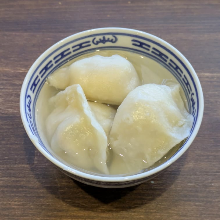 花水土香で定番メニューの水餃子は、中国の天然酵母(老麺)を練り込んだ、風味のよいもちもち皮の本格水餃子