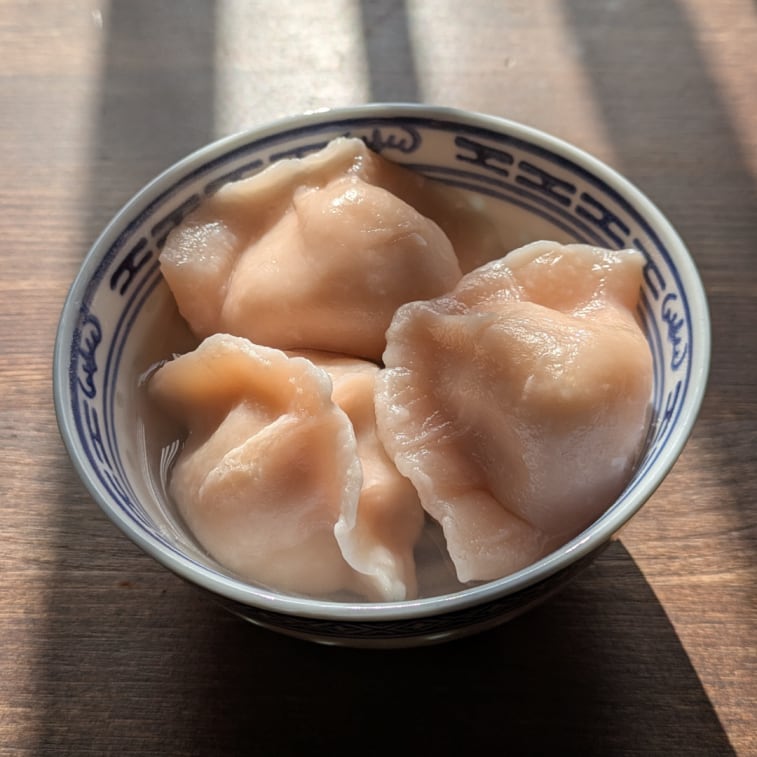 今回は春節にあわせ、白菜の漬物をたっぷり練りこんだ豚肉の水餃子&オンラインショップ限定 エビとくわいの水餃子二種類の水餃子セットをお届けします。
